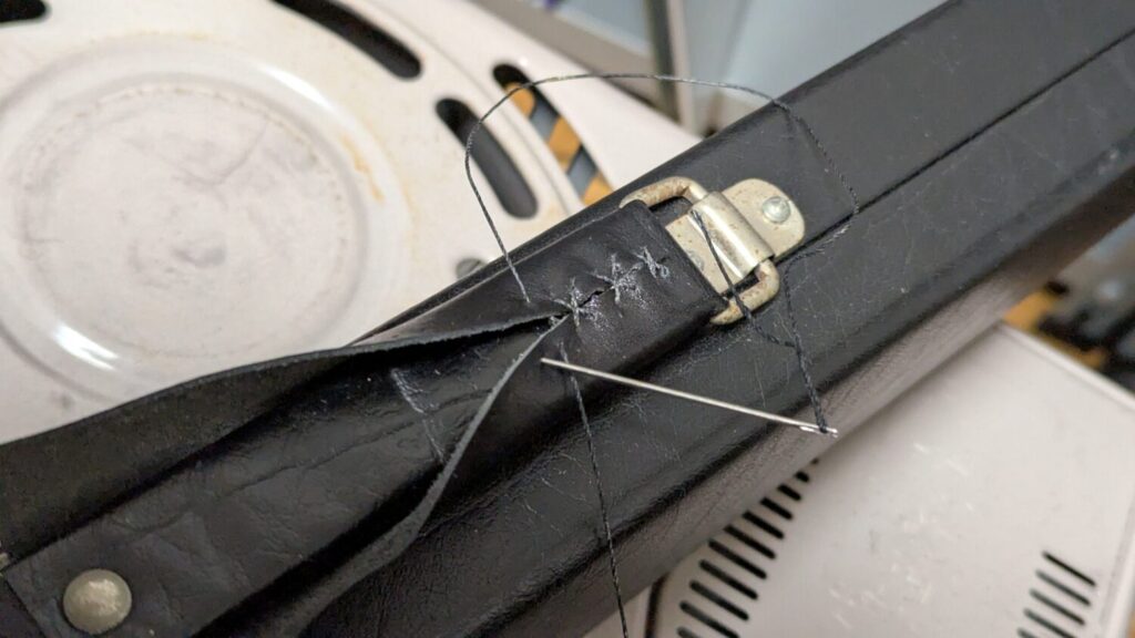 ビリヤードのキューケースのハンドルが劣化してたので革で補強