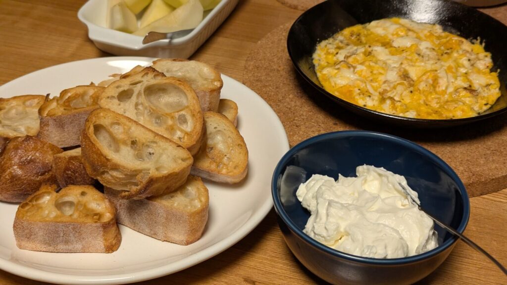 塩麹とヨーグルトで作った自家製クリームチーズをパンでいただく