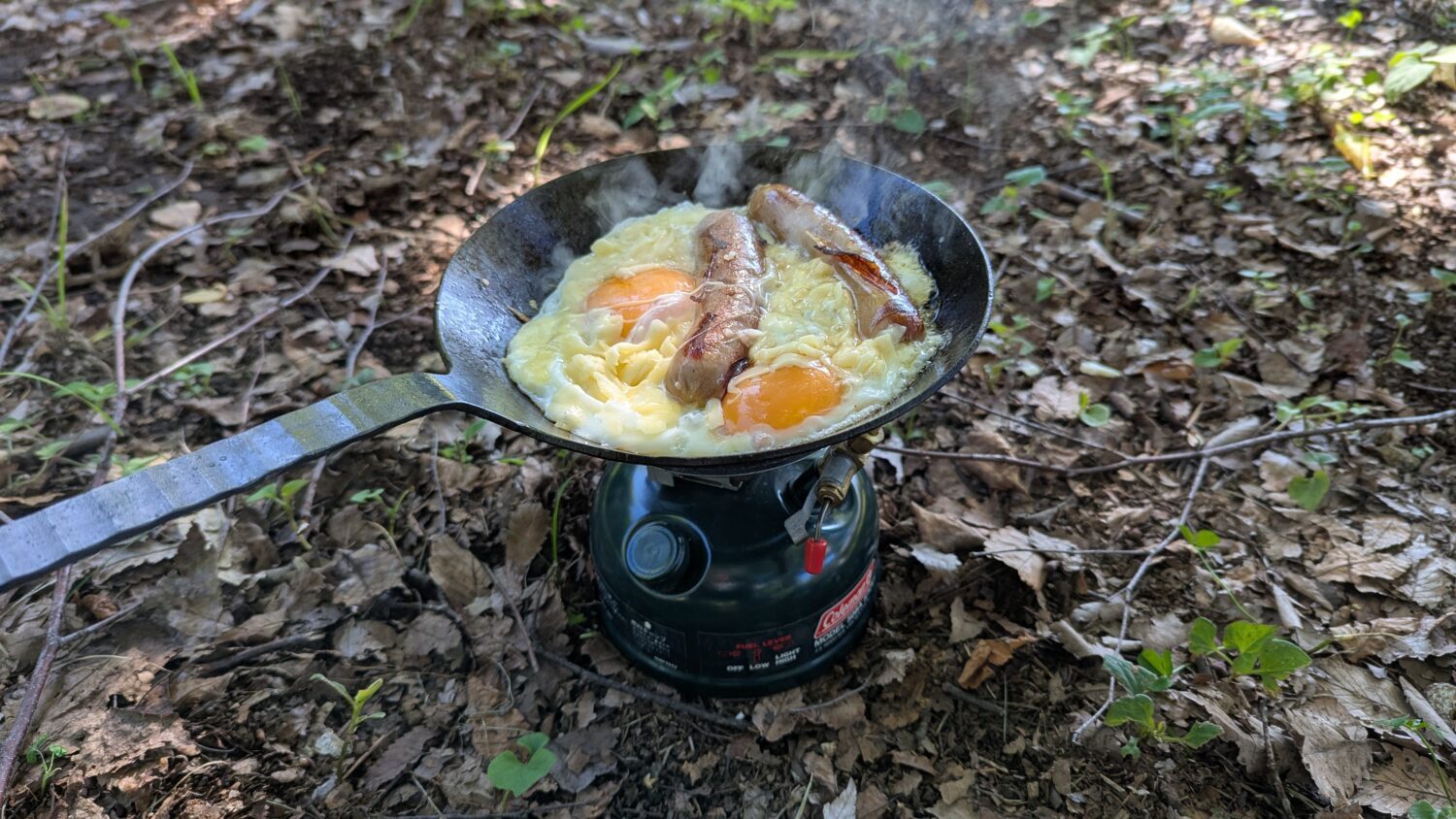 コールマンのストーブだと火力調整できて便利。