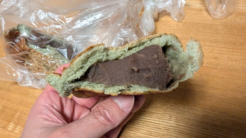 さかえぱんのよもぎアンパンちゃん あんこがよもぎ入りでなく皮がよもぎ入り